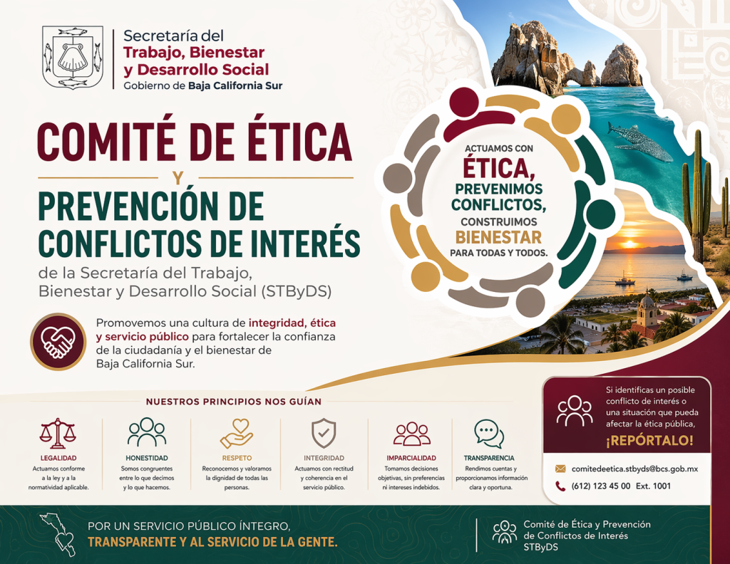 La Contraloría General del Estado de Baja California Sur, a través de su Unidad de Ética y de Prevención de Conflictos de Interés.